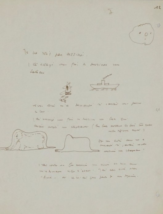 « Sans la Seconde Guerre mondiale, nous n’aurions pas LE PETIT PRINCE. les dessins, ses aquarelles pâles et ternes sont le moyen de parler de lui-même, de ses expériences amoureuses, de ses craintes face à l’incertitude d’un monde en guerre. Le protagoniste ne pleure pas, il est pensif dans cet univers limité de l’astéroïde, comme concentré dans un déguisement ou un gilet de sauvetage pour dire ce qu’il ne pouvait pas raconter. Ce sont des faits réels recouverts d’un voile de fiction, un appel à l’aide que l’aviateur envoie au monde au milieu de la tragédie universelle ».
