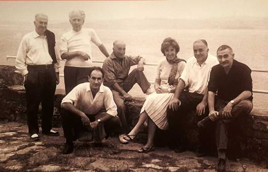 Menchu Gal en Fuenterrabía en los años setenta, con Gaspar Montes Iturrioz, Benjamín Palencia, Eduardo Chillida, Luis Vallet, Manolo Monte y Jorge Oteiza.