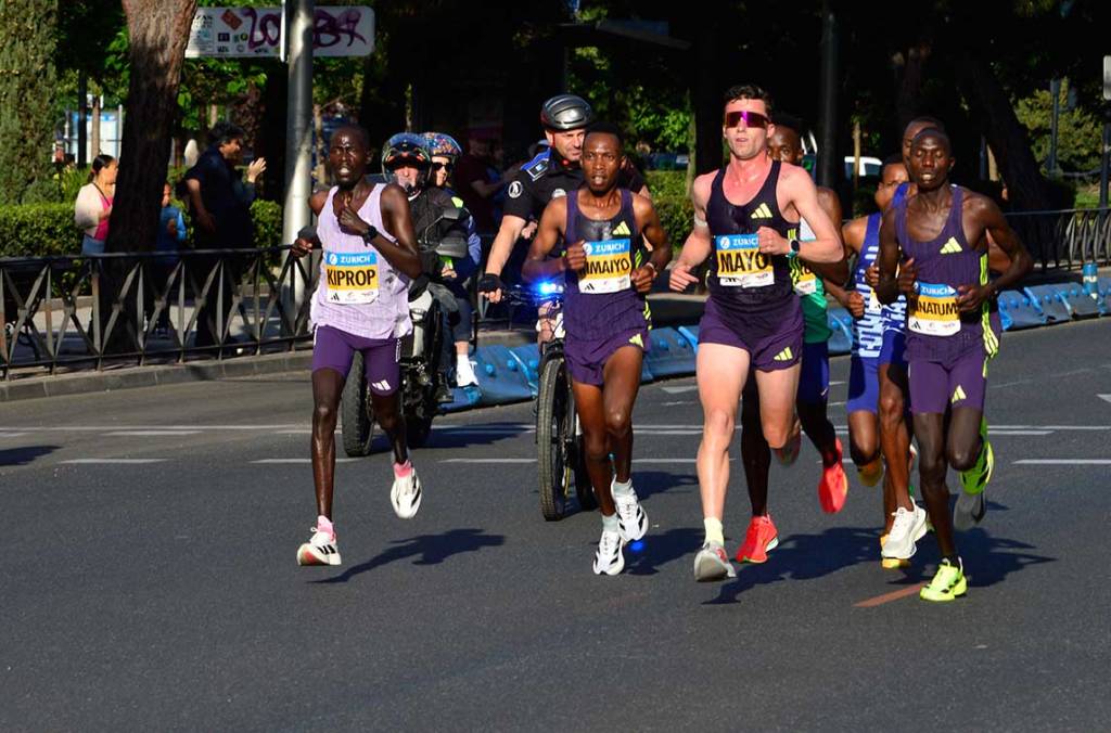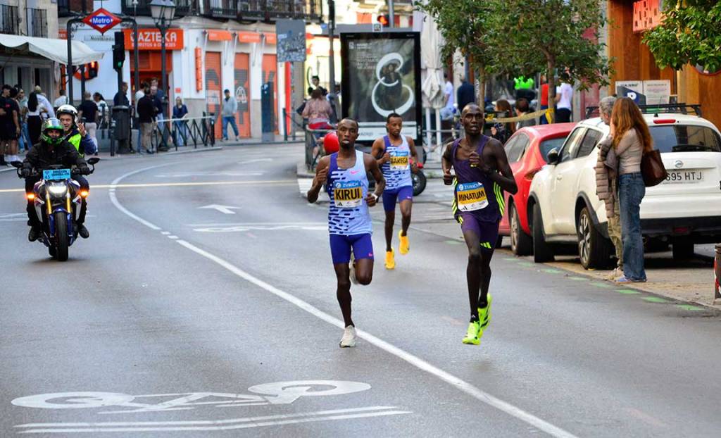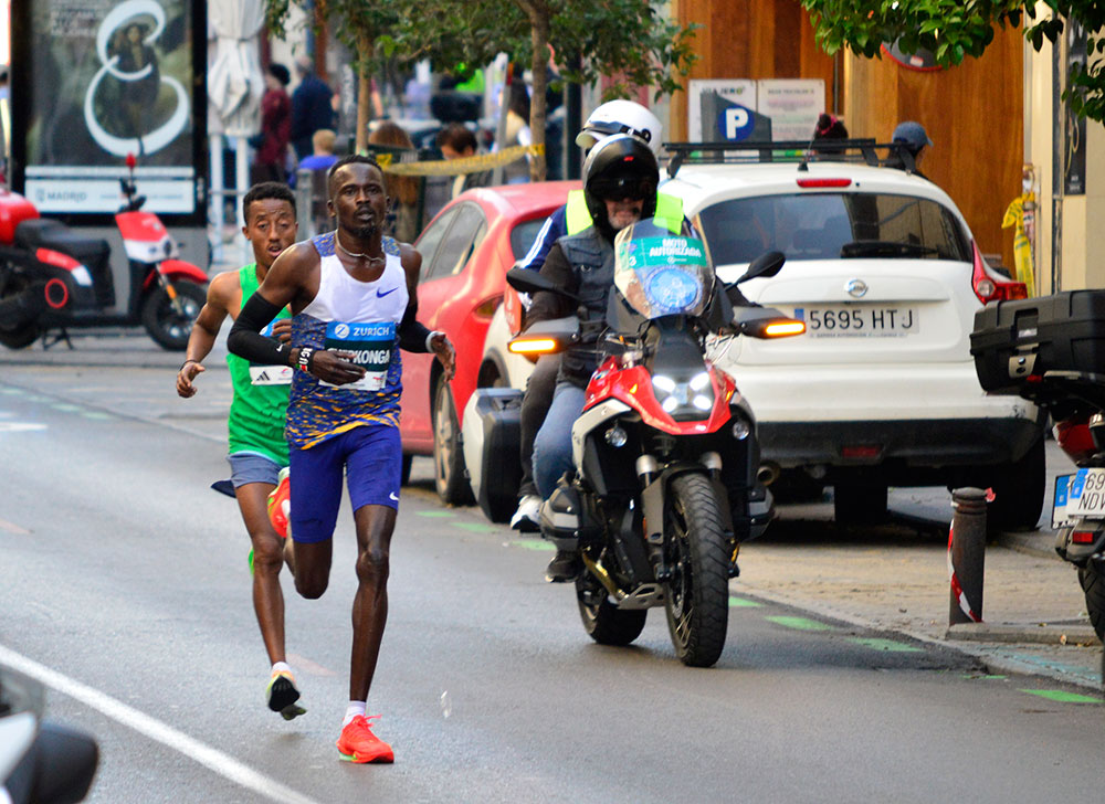Más de 42000 participantes tomaron la salida desde el estadio Bernabeu rumbo al éxtasis.Momento de concentración previo a la salida.La Policía en ayuda del ciudadano.Salida de la segunda oleada.Cada oleada estaba formada por más de 10000 atletas.Pelotón compacto de la cuarta oleada a su paso por la calle Serrano.El keniano Geoffrey Kamworor, en el centro del pelotón de escapados a su paso por la calle Alcalá, fue el ganador de la carrera, con un tiempo de 27`42″. A su izquierda y derecha aparecen el segundo y tercer clasificado, Jesús Ramos y Aaron de las Heras. Marta Gallardo fue la tercera mujer.