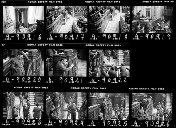 Pensando en los españoles jóvenes que no vivieron aquellos momentos y rescatando de la memoria fotográfica documentos arrinconados proponemos un repaso a los once fotogramas que la pericia y profesionalidad de Manuel Pérez Barriopedro, el fotógrafo de EFE, hizo en aquellos breves momentos en los que el teniente coronel golpista amenazaba a todos con su Star BMK 9 milímetros parabellum, como las de los etarras a los que quería combatir. Sin imaginarlo, Barriopedro nos dejó un testimonio fundamental para conocer los porqués del camino que España recorre con paso errático.