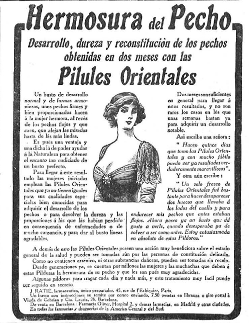 Así se anunciaban en la página 2 las bondades de, en este caso un remedio infalible para que las señoritas resultasen irresistibles a los caballeros, en la revista