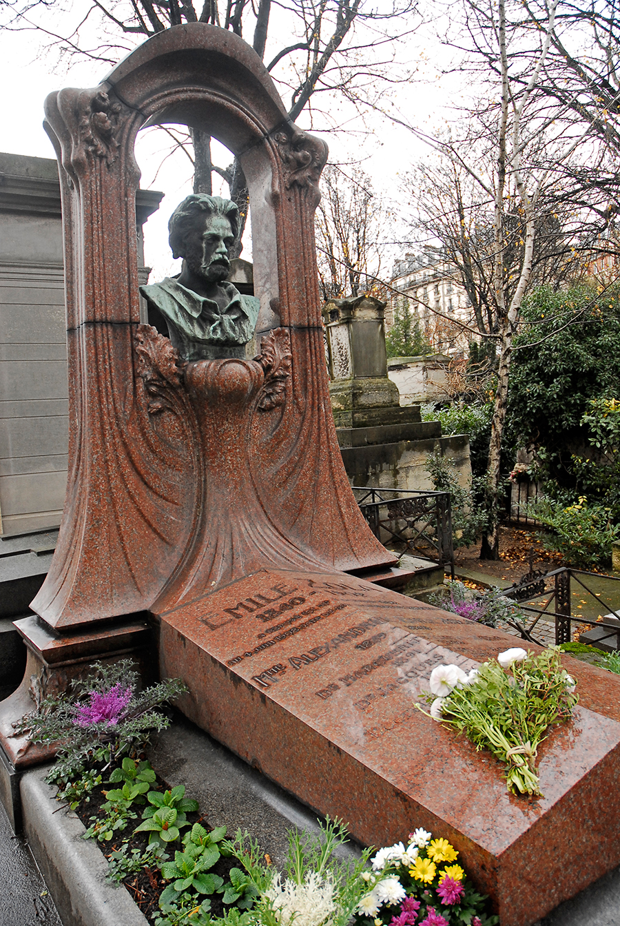 J’acusse. Émile Zola escribió el 13 de enero de 1898 en el diario L’Aurore un artículo denunciando la condena injusta que había sufrido el capitán Alfred Dreyfus, acusado con pruebas falsas de traición a la patria y recluido a perpetuidad en la Isla del Infierno, Guayana Francesa. Se mezclaban en la Consejo de Guerra el antisemitismo, tan extendido en Francia entonces como ahora, los intereses de la derecha tradicional, junto con el corporativismo militar. Emile Zola sufrió todo tipo de presiones, calumnias, infamias y desprestigios por parte de todos aquellos que no querían reconocer la inocencia de un ciudadano francés de origen judio. Emile Zola falleció en 1902, antes de saber que Dreyfus fuera finalmente declarado inocencte (en 1908) y rehabilitado por la Republique, que antes lo había condenado vergonzosamente, con todos los honores en 1906. Tumba de Èmile Zola en el cementerio de Montmartre, París.