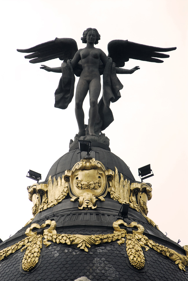 La Gran Vía 24 sábado Nov 2018 Tamaño original 650 × 971 ≈ Deja un comentario La Victoria alada que corona el Edificio Metrópolis se alzó al techo en 1977. Es obra de Federico Coullaut Valera.