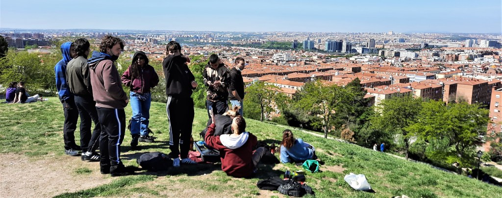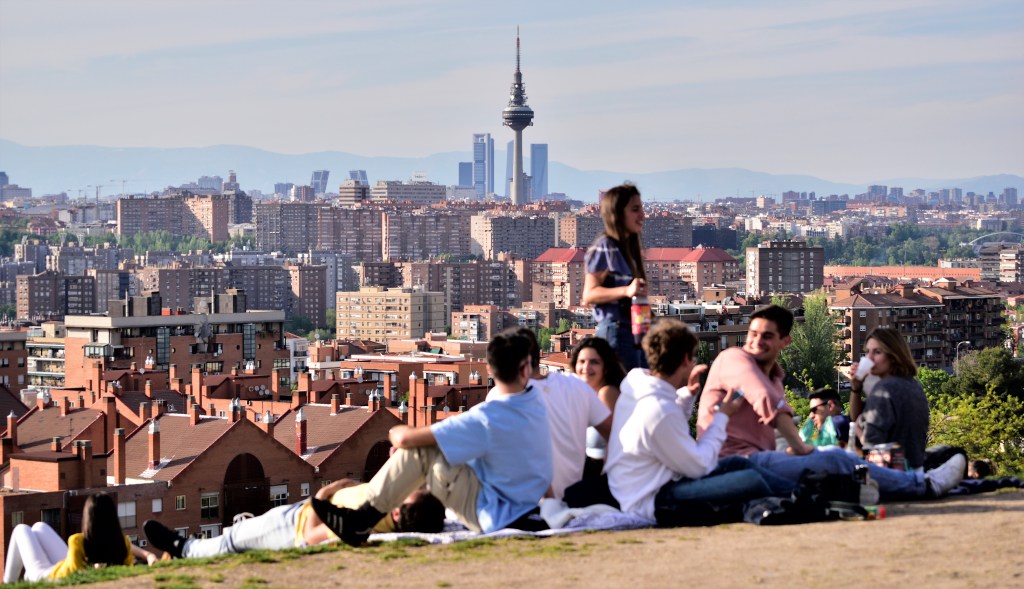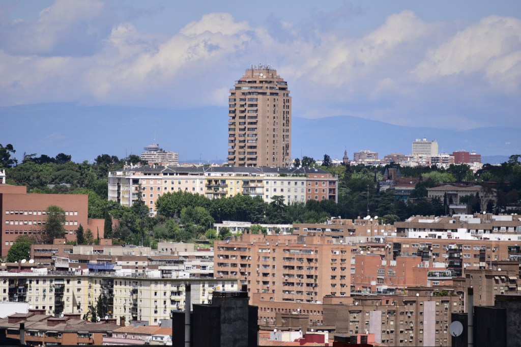 Ahora es el paseo, la merienda, el beso, aquí donde se juntan los caminos, el baile que agita los cuerpos al son de una orquestina improvisada, ritmos de aquí, échate un bailesito, de allá, nadie te pregunta tu origen. El caserón manchego, al fondo el Guadarrama, las cinco torres, cinco, de Castellana, el Pirulí, el hospital Gómez Ulla —Eduardo Torroja lo reconstruyó—, la estación de Atocha, las torres de Plaza de España —de los hermanos Otamendi Machimbarrena—, el edificio de Telefónica —de Ignacio Cárdenas Pastor—, Torres Blancas —Sáenz de Oiza—, la torre del Retiro —de Luis Gutiérrez Soto—, el “brutalismo” de la Torre de Valencia —Javier Carvajal, su autor— asomándose sobre la masa verde del Retiro. La arquitectura, el urbanismo, la enredadera de Madrid capital dibujada en perspectiva axonométrica sobre el tablero de la vida… el cariño que te tengo no te lo puedo negar, se me sale la babita, yo no lo puedo evitar. Y la tarde llenando los tejados de oro, rojo y azul. El parque de las siete tetas, una atalaya, aquí no hay playa, los puntos cardinales, la caricia, el abrazo, la risa, los amigos de aquí, de allí, del otro lado del mundo rematando el domingo con una mahou, la espuma blanqueándome los bigotes, tus besos robados me adecentan los labios. La ruleta elige tu futuro. No somos más que el capricho del destino. Madrid a mis pies.