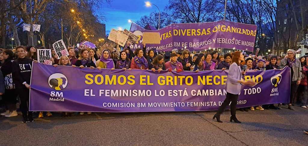 El “Orgullo” femenino se dio de bruces con la división, ese filtro que enturbia todas las comuniones de las izquierdas. Se juntaron en Atocha, que aquello parecía la madre de todas las manifestaciones, miles y miles de personas levantado banderas moradas, ternos morados, labios morados, puños morados, pancartas moradas como si un dios padre nazareno hubiera llamado de pronto a sus amados/as seguidores/as. Pero fue un espejismo, un guiño efímero, porque un poco más allá se separaban, la facción Movimiento Feminista decidió seguir calle Atocha arriba, mientras que la facción 8M Movimiento Feminista ponía proa hacia Cibeles para adentrarse después por el mar caribe de la Gran Vía. La diosa prefería mirar a Hipomenes y Atalanta, sus leones, mucho más templados que toda aquella muchedumbre. A un observador lego le resultaría difícil diferenciar una de otra marcha morada, e indudablemente, quizás necesitaría de explicaciones prolijas para comprender los motivos de la disputa, del divorcio, de la conjura de los necios/as. ¡Pero no son todas feministas y protestan por obtener las mismas garantías, iguales derechos que los del hombre y beneficios para la mujer!, ¿entonces, por qué discuten entre ellas por un ¡ay, quítame aquí aquellas pajas!? No entiendo nada.
