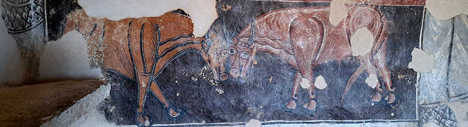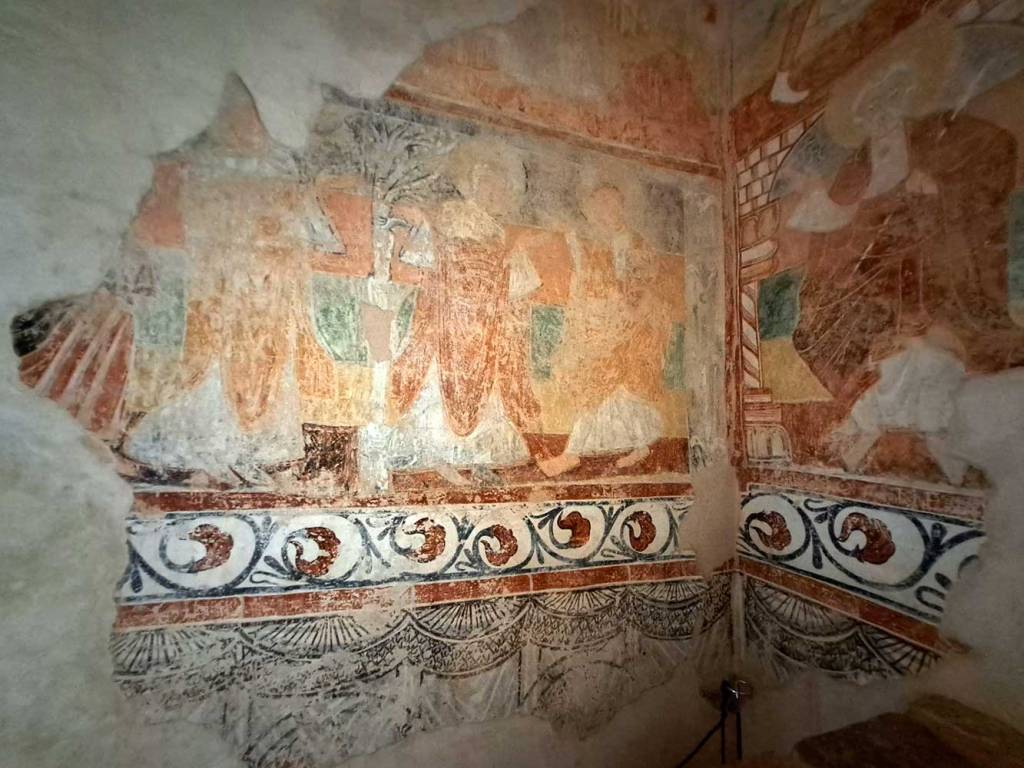 Perdida en la quietud de la soledad soriana, rodeada de la nada se alza en una colina la ermita mozárabe de San Baudelio de Berlanga, construida en el siglo XI. Una comarca despoblada a una altitud media que supera los 1100 m. Por fuera parece una construcción anodina, una lonja para guardar herramientas o carruajes o ganado. Nada indica las riquezas pictóricas que guardaba su interior, utilizado como redil a comienzos del siglo XX por los moradores de la comarca, que veían con cierto pavor las pinturas murales de su interior fechadas sobre 1125. Figuras amenazantes, trazos antiguos, animales descabalados y misteriosos, un elefante (nadie vio durante aquellos siglos en la Península Ibérica un paquidermo), unos bueyes, escenas de caza, santurrones hieráticos mezclados con el hedor de los orines y excrementos de las merinas. ¿Para qué conservar esas paredes pintarrajeadas si de ellas se podía obtener un buen puñado de dólares?