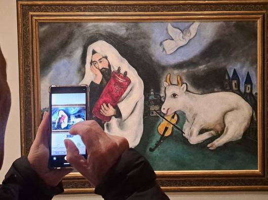 ¿Qué diría Chagall del bombardeo de hospitales palestinos o de la entrada en los mismos, un lugar de paz, de reposo y de cura, de comandos armados del ejército israelí para matar indiscriminadamente, acciones de guerra, a presuntos enemigos? Todos son enemigos para Israel. La ONU, el mundo entero es el enemigo de Israel. Él, el artista que se comprometió con la creación de un lugar de paz y confraternidad para el pueblo judío.