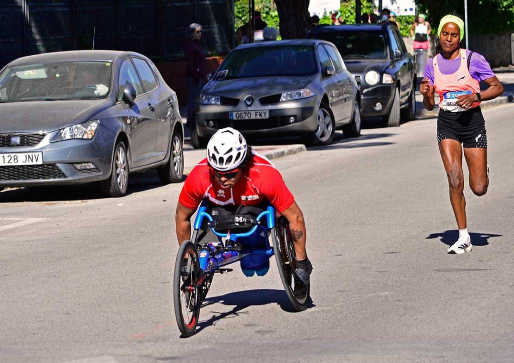 Correr la maratón, épica de adrenalina, surtidor de ácido láctico bloqueante desbordado por las venas, torrente de cansancio infinito gozoso, baño de locura colectiva, de recogimiento íntimo. Ejercicio monacal de reclusión interior, de reflexión dolorosa. La Maratón, esa procesión que abarrota las calles de la capital de penitentes fervorosos del cansancio, arrastrando sobre sus espaldas su cristo lacrimoso de zancadas como puñales, de llagas en las plantas de los pies clavadas al madero del asfalto ciudadano, como si declamaran una saeta colectiva en honor del santo esfuerzo. Filipides de barriada exclamando jubilosos el grito de triunfo al llegar a su Atenas, a su meta: ¡Alegraos, nos vencimos!