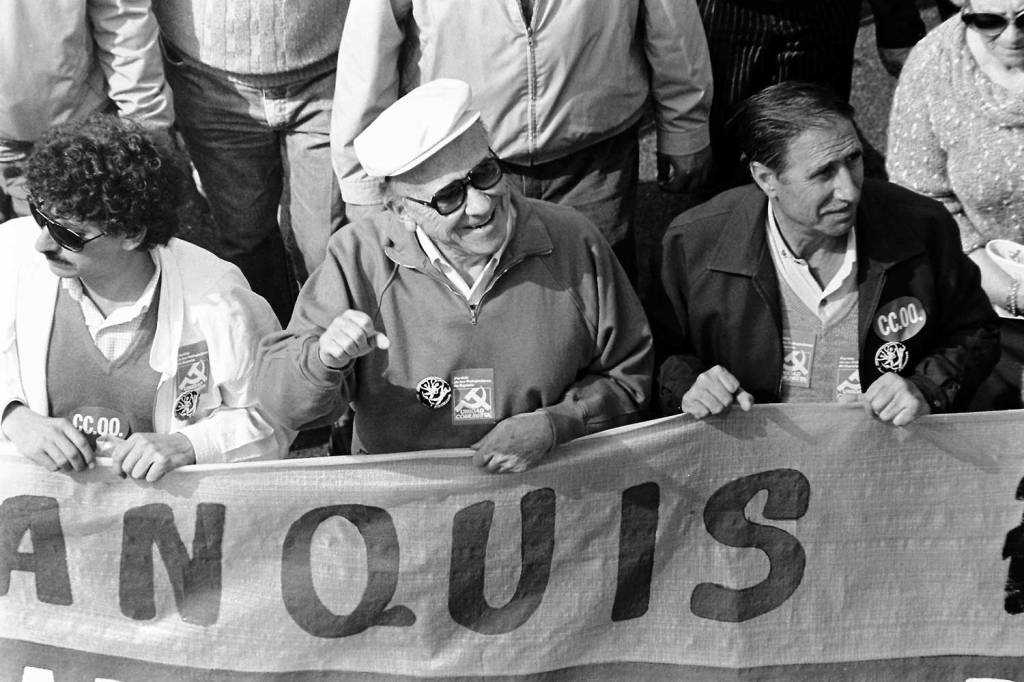 Alvaro Cunhal y Gerardo Iglesias el 26 de marzo de 1987 en Madrid, en una reunión del PCE del que Iglesias era secretario general.Carrillo en una manifestación Anti OTAN, Madrid, marzo 1987,Marcha a Torrejón contra las bases yanquis, 15 de marzo de 1987. Antes de estar legalizado el PCE, el 2 de marzo de 1977, Carrillo declaró que aceptaba la presencia de bases americanas en España. Congreso constituyente del Partido de los Trabajadores, Madrid, 7-8 marzo, 1987.Todos aplauden a Carrillo durante el congreso constituyente de su partido, 7-8 de marzo de 1987.