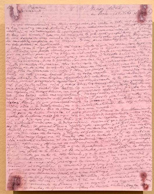 Carta que don Unamuno Miguel escribe a Henry Miller el 7 de diciembre de 1936 desde su casa prisión de Salamanca en la que le relata sus vicisitudes vitales. Sería la última epístola de las miles y miles escritas a lo largo de su frenética y laboriosa existencia. El franquismo acabó con él.