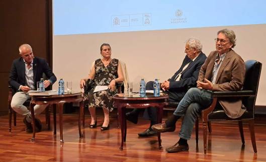 Jacobo Sanz Hermida, Jean-Claude Rabaté, Colette Rabaté y Octavio Ruiz-Manjón durante la mesa redonda sobre Unamuno y la Historia, el 25 de septiembre de 2024 en la Biblioteca Nacional.
