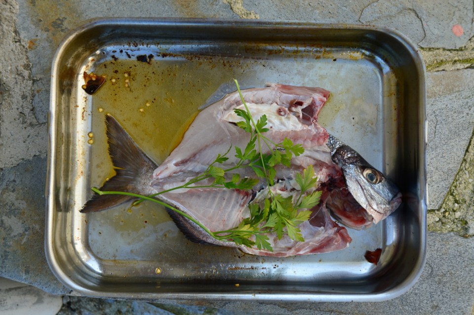 Carmelita abrió las lubinas con pericia, les retiró las tripas y las lavó bien, quedaron limpísimas. Después, en una cazuela echó unas gotitas de aceite y sobre un colchón de cebolletas doradas que había sofrito previamente las depositó con primor. Ella era más tradicional, se sirvió un Sanz blanco de Rueda, apenas si dio un sorbito. El horno estaba ya casi a la temperatura indicada, 180°.
